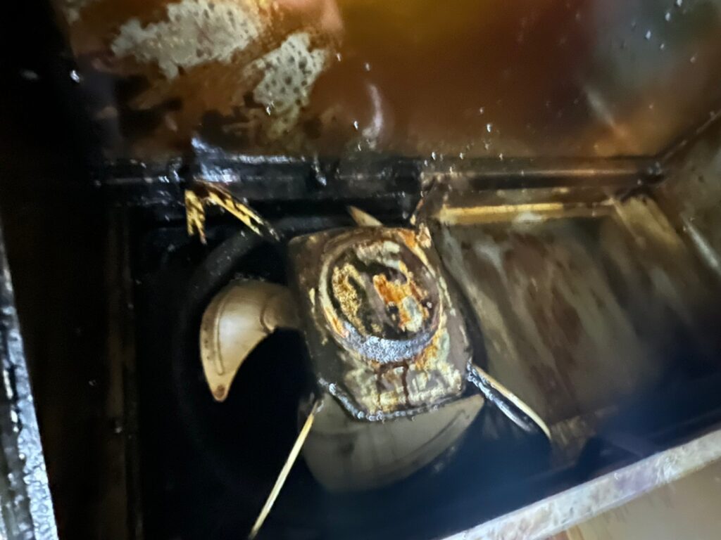 店舗内で換気が不安定になってきたとの連絡を受け、現地で換気扇まわりの状態を確認しました。