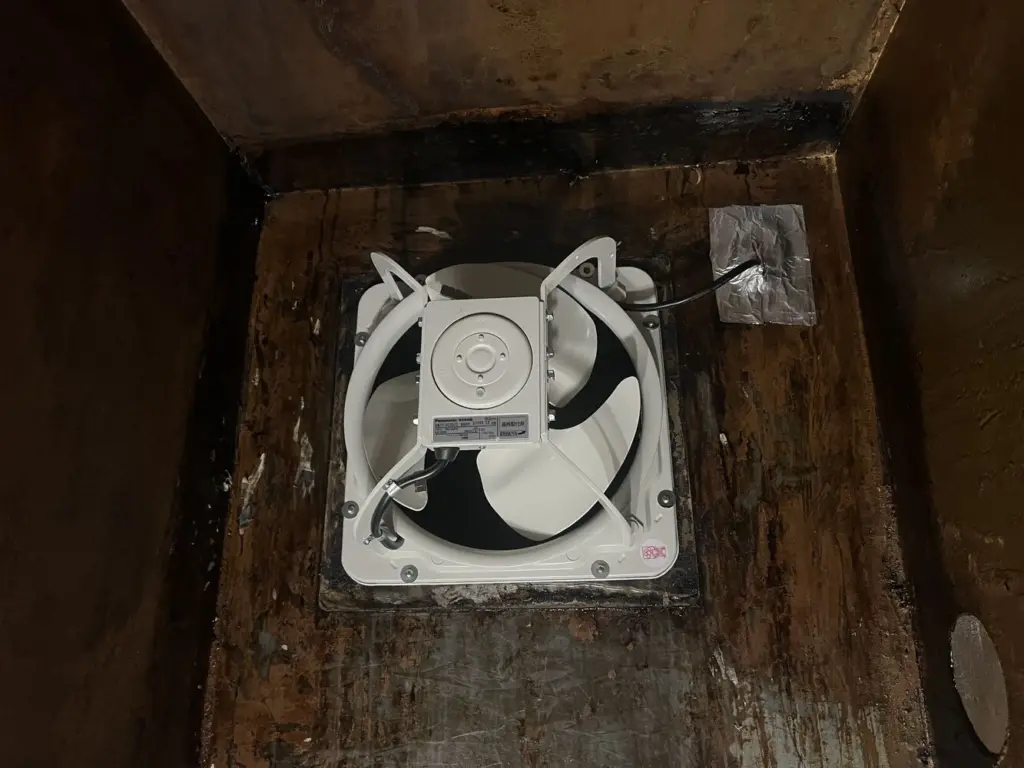 点検の依頼を受けて確認したところ、風量が弱く感じられる状態でした。取り付け部の負担が蓄積しており、固定力が落ちていたため、周囲に干渉しないよう慎重に撤去しました。新しい換気扇を設置して排気がしっかり届く状態に戻り、無事作業が完了しました。